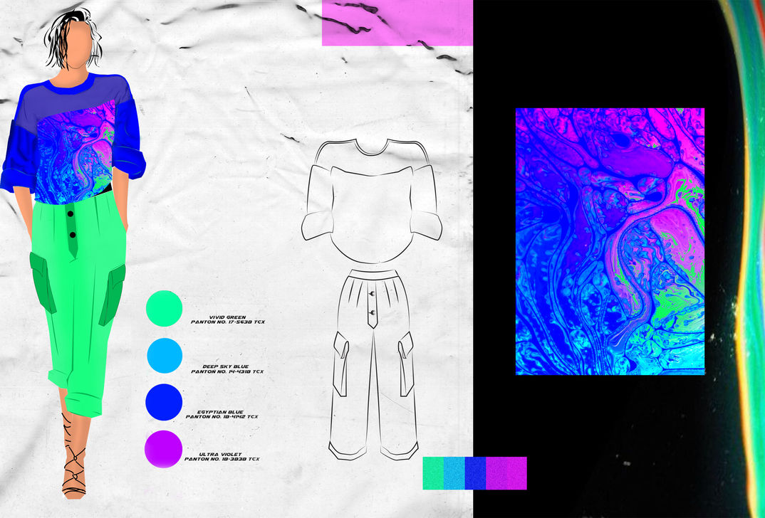 The collection aims to bring abstract form of prints that work with Psychedelic and escapist themes which take luxe winter eveningwear from sensorial opulence into a hypnotic direction, which will also work well for high-energy streetwear.